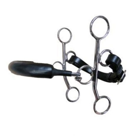 Bocado Hackamore Hervé Godignon cama corta con efecto de palanca poderoso (pronunciado por la longitud de las barras). Viene con una cadenilla de cuero. La parte que se basa en la cara es amovible para proporcionar más o menos dureza. Tamaño único.