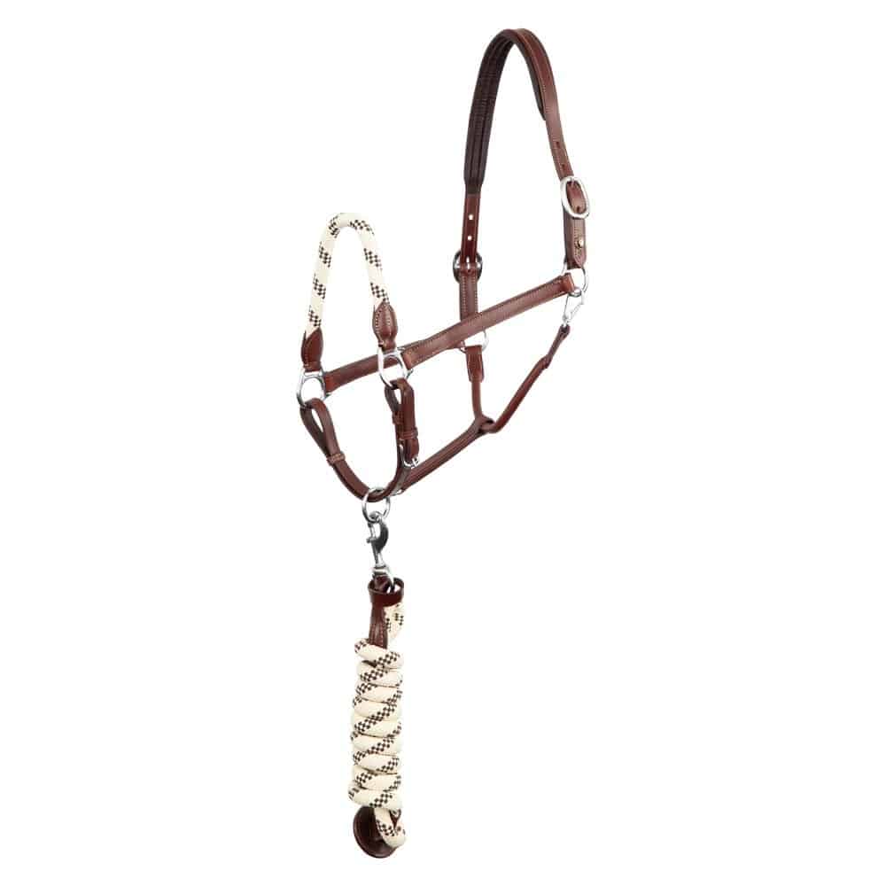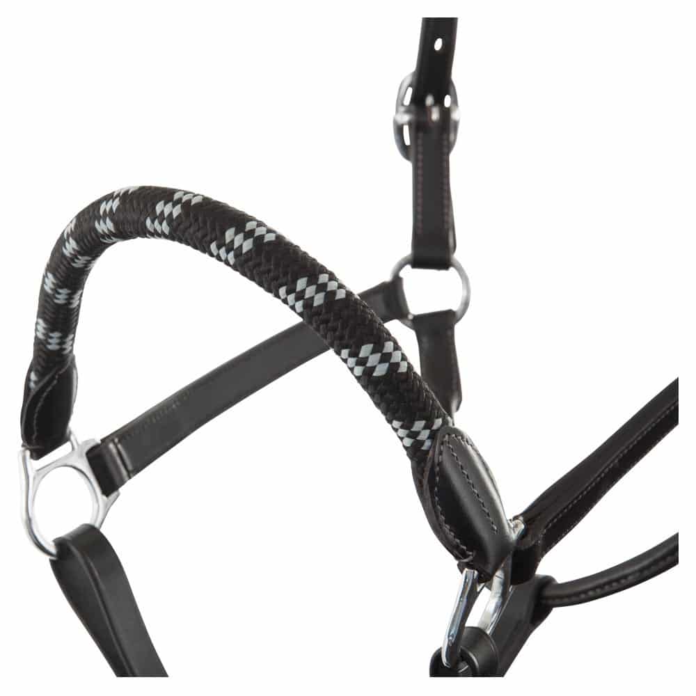 Cabezada BR set Dundee. Con mucho estilo, cabestro de cuero con banda de nylon redonda y plomo de nylon.