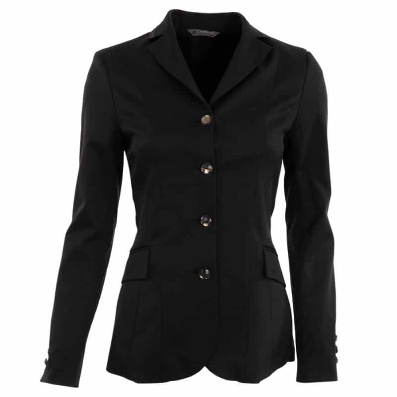 Todo está en los detalles. Esta elegante chaqueta de competición está adornada con botones de diamantes brillantes y una sutil cinta decorativa a lo largo del cuello y las aberturas para montar. La chaqueta de competición ANKY® Embellished tiene un corte magnífico para un look favorecedor. La chaqueta está hecha de poliéster suave de buena calidad con un ligero efecto elástico para mayor comodidad. Además, el material repele el agua y la suciedad. El forro interior de malla, también elástico, regula la humedad. La chaqueta tiene elegantes bolsillos con solapa y está equipada con botones de diamantes oscuros en la parte delantera y los puños. La cinta decorativa en un tono a juego a lo largo del cuello y las aberturas para montar le dan a este artículo clásico aún más estilo. Composición: 100% poliéster. Puedes lavar esta prenda a 30 ° C en tu lavadora, pero asegúrate de usar una bolsa de lavado para proteger los elementos decorativos.
