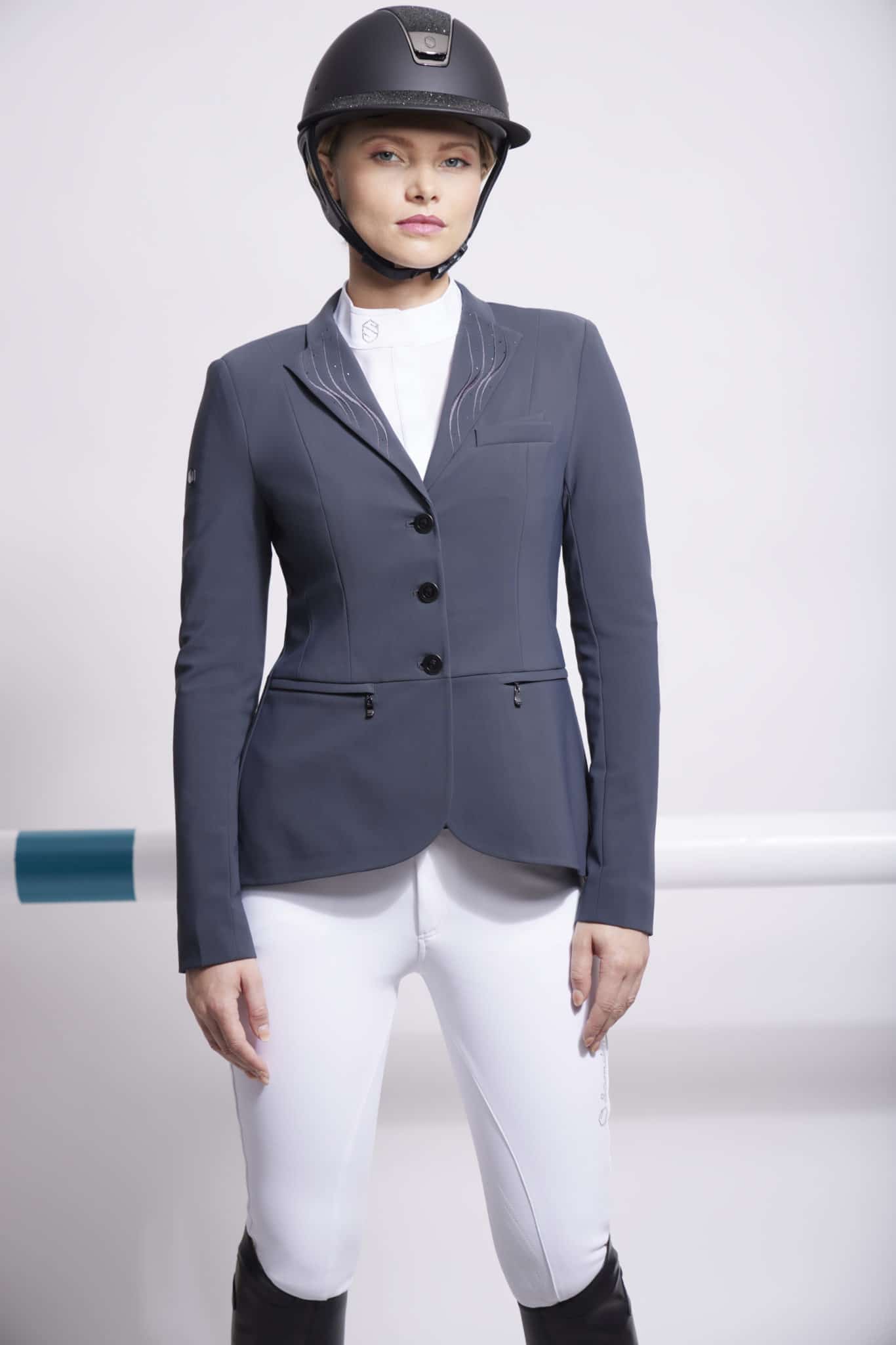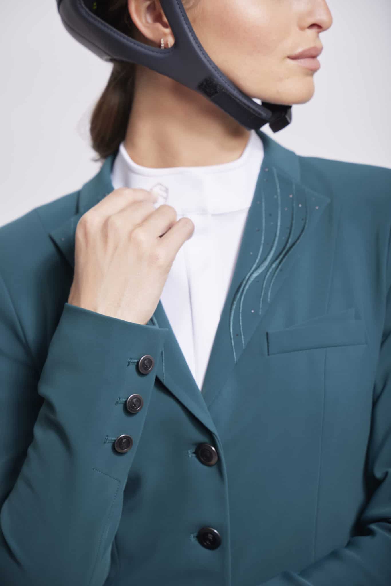 La Chaqueta de Concurso Victorina Flame Samshield está diseñada para garantizar la comodidad y el tecnicismo para los ciclistas. Su corte delgado y asimétrico (más corto en la parte delantera que en la trasera) asegura un ajuste perfecto, elegancia y comodidad de conducción. La Victorine está fabricada con un material técnico altamente transpirable que brinda soporte, flexibilidad, ligereza y durabilidad para una comodidad óptima. Victorine Flame está protegido contra los rayos UV y protege la piel de los rayos ultravioleta. El interior de la chaqueta, diseñado en stretch y mesh, permite una excelente transpirabilidad y libertad de movimientos. Las características especiales de esta elegante y femenina chaqueta son el hermoso bordado tono sobre tono con cristales Swarovski® y Metal Dots en el cuello y la espalda de la chaqueta. Esta chaqueta asegura una distinción especial.
