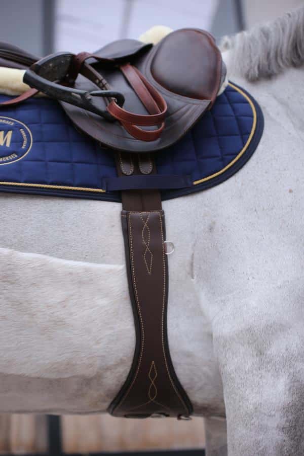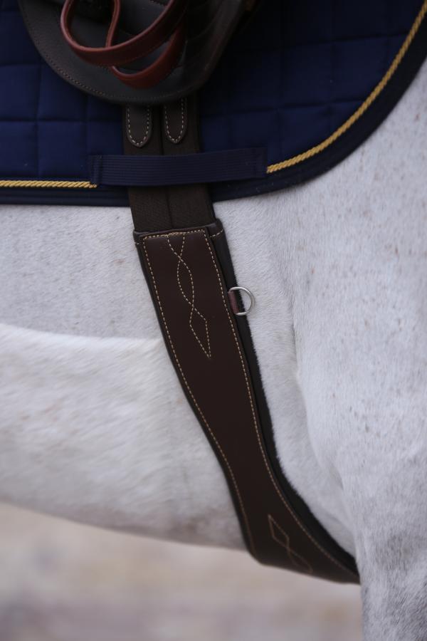 La cincha esta confeccionada en cuero artificial, lo que es más fácil de mantener . Por otra parte, el cuero artificial no absorbe la suciedad, el sudor o el agua y por lo tanto es durable!