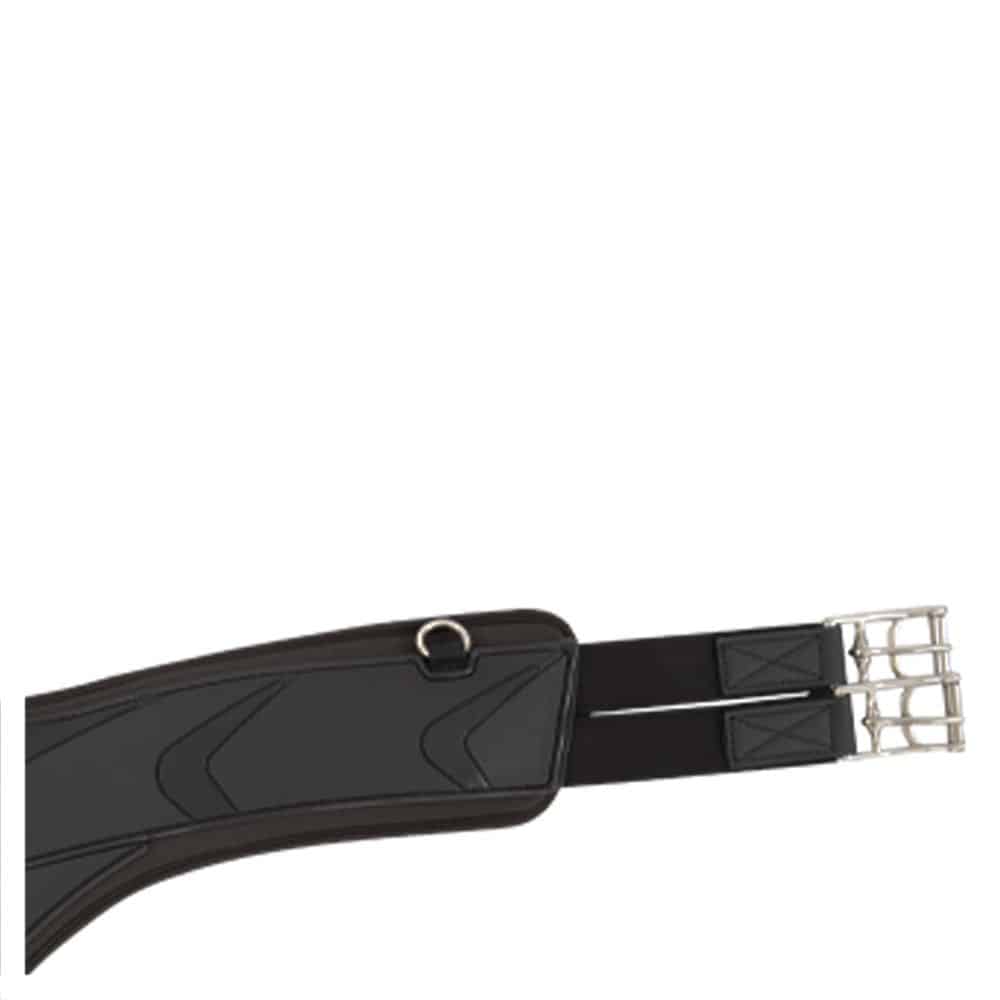 La cincha Poly BR es de uso general con protector de tachuelas está forrada con neopreno suave. El protector de tachuelas proporciona una protección óptima del vientre al saltar y el diseño anatómico de la cincha le da al caballo una libertad de movimiento óptima. La cincha tiene elásticos en ambos lados y elegantes hebillas de rodillo. Las inserciones elásticas ofrecen una comodidad adicional y facilitan la circunferencia de su caballo. Hay dos anillos en D en el medio y un pequeño anillo en D en ambos lados para la posible sujeción de las riendas de tracción. La cincha es fácil de limpiar.
