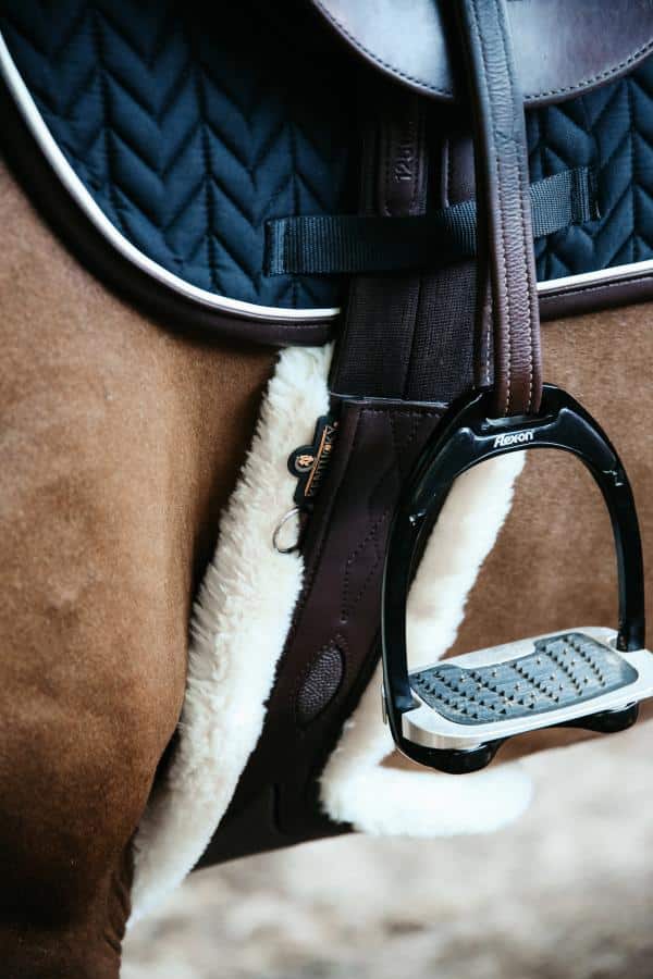 Esta cincha de piel de oveja está hecha de cuero artificial que no absorbe suciedad, sudor o agua y, por lo tanto, es más duradera. Además, no cambia de color y no se daña fácilmente.