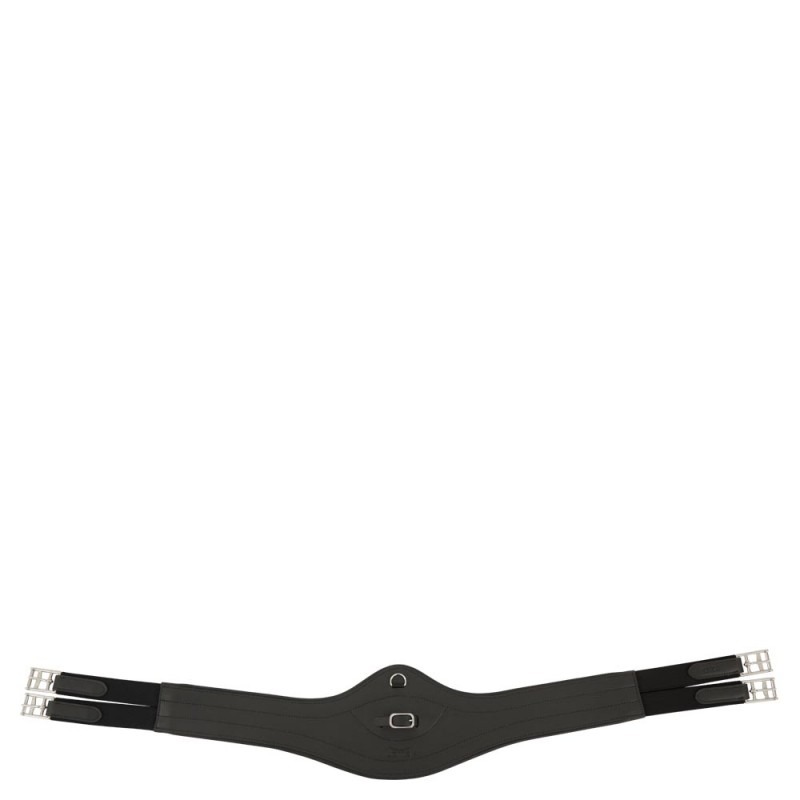Cincha Tekna Le Tek Pressure-Eze es esta lujosa y preformada cincha que está hecha de material Quik-Clean ™ en el exterior, y cuero suave en el interior. Esta combinación de materiales crea una cincha que es cómoda para el caballo y ayuda a respirar. La cincha también es más duradera y fácil de mantener. El suave forro y el diseño amplio distribuyen bien la presión. La forma anatómica de la circunferencia le da al caballo la máxima libertad de movimiento. Las inserciones elásticas ofrecen una mayor comodidad y facilitan el ajuste de la cincha. También sostienen la silla de montar en la posición correcta en la espalda del caballo. La circunferencia tiene anillos en D en ambos lados y en el medio para permitir que se adhieran ayudas de entrenamiento o un peto. La martingala o las ayudas de entrenamiento también se pueden colocar o quitar fácilmente de la correa en el centro de la circunferencia. La cincha tiene hebillas de rodillo de acero inoxidable, lo que hace que sea más fácil girarlo.