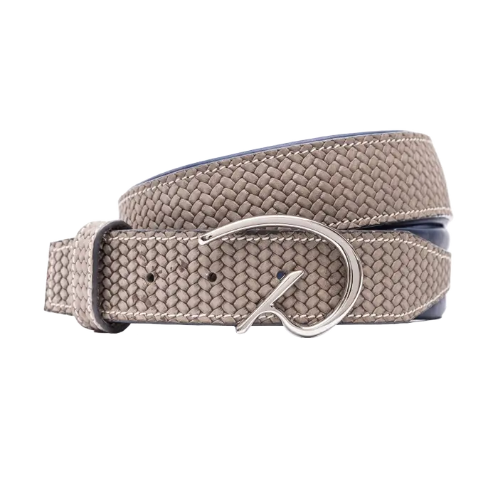 Cinturón D «Atlanta» de piel mixta tipo cesta y piel de vacuno con un ancho de 35 mm y un largo de 70 a 125 cm con hebilla en D de acero inoxidable.