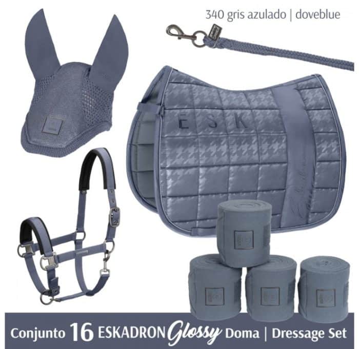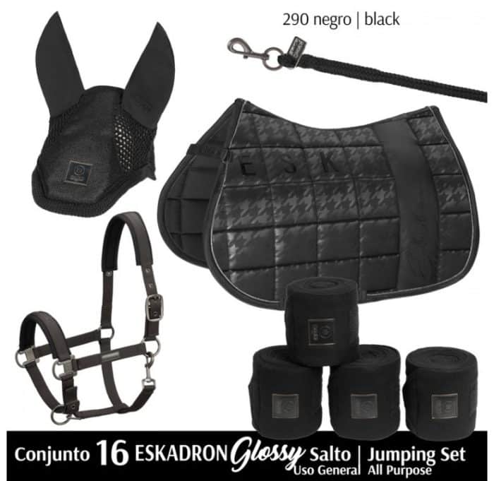 ESKADRON glossy para Salto/Uso General y para Doma, compuesto por: Cabezada, Ramal, Mosquero, Mantilla y Vendas.