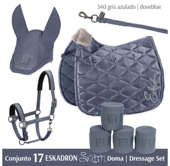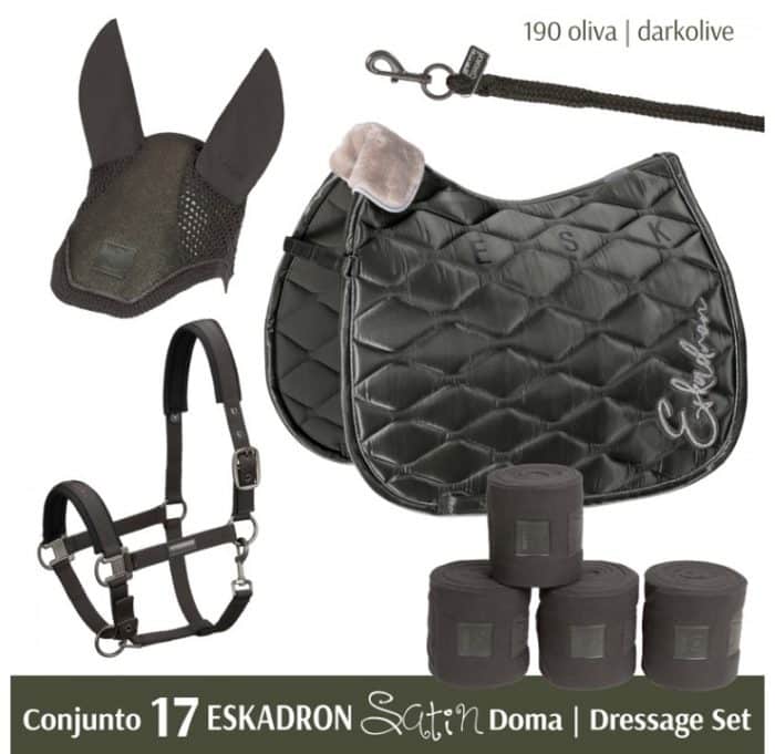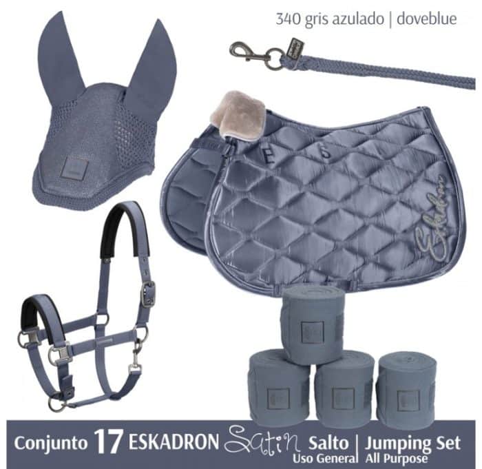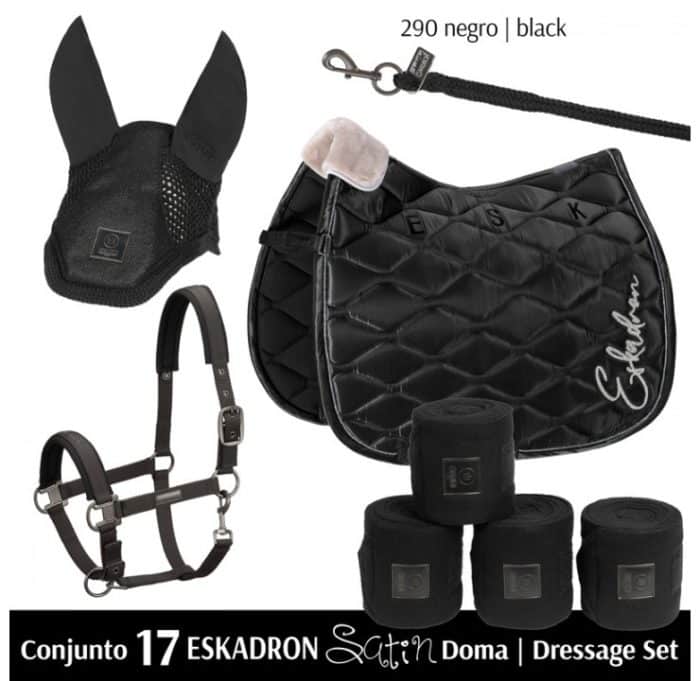 ESKADRON Satin, para Salto/Uso General y para Doma, compuesto por: Cabezada, Ramal, Mosquero, Mantilla y Vendas.