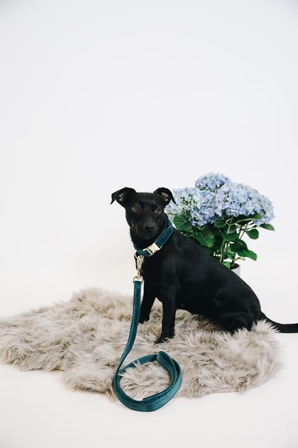 Tamaños: 120 cm. Colores: esmeralda, azul claro, mostaza, rosa vieja Correa de perro con clase Collar de perro de terciopelo a juego Suave y fuerte
