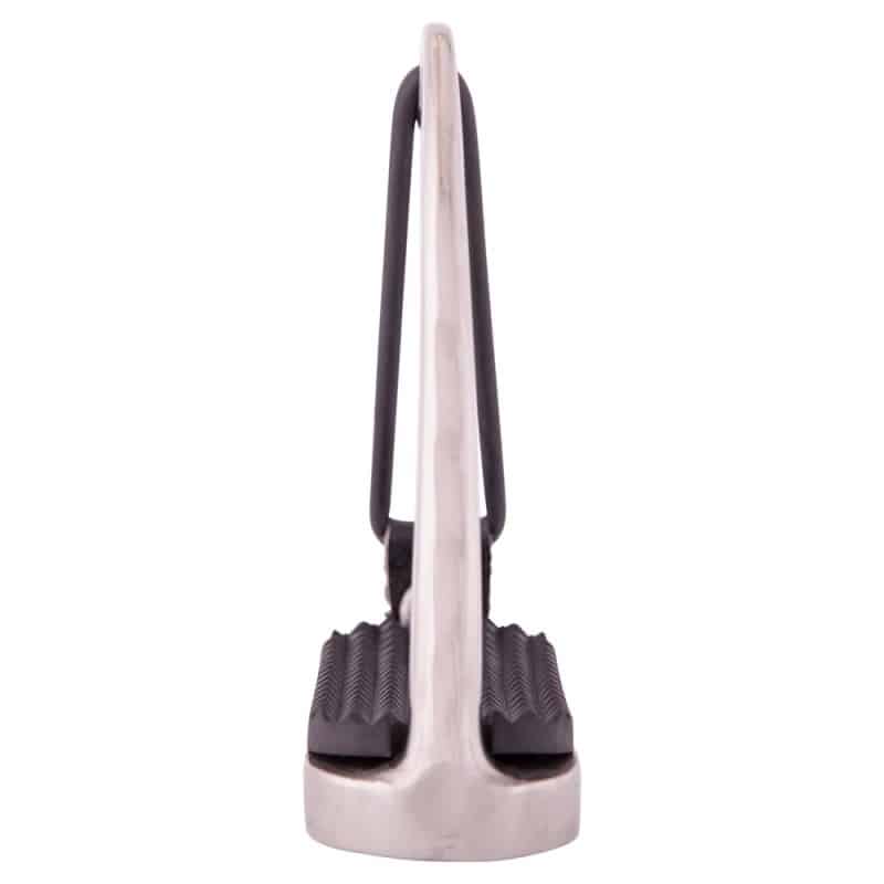 Llena los estribos con gomas elásticas, de acero inoxidable con peldaños negros.