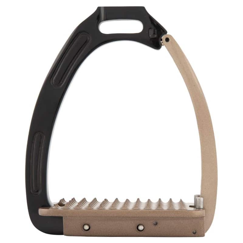 Los estribos cuentan con un mecanismo de seguridad magnético. El peso del jinete abrirá el cierre magnético en caso de caída.