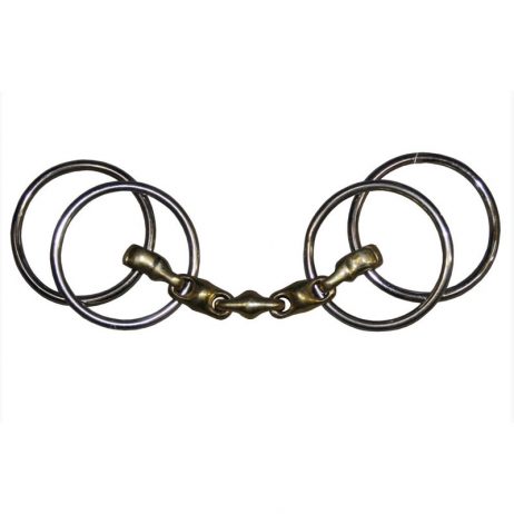 Filete 4 Anillas Hervé Godignon 3 piezas embocadura bolas está compuesto por 4 anillas. El juego de las anillas evita los puntos fijos y divide el apoyo. Las 2 primeras anillas se colocan sobre las carrilleras, las otras dos anillas de la embocadura son fijadas a las riendas. Anillas de 70 mm y grosor de filete de 17 mm.