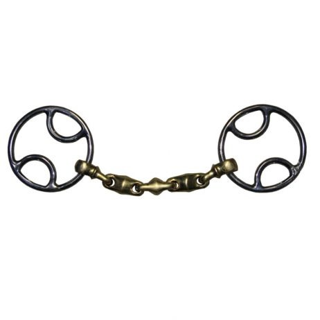 Filete que conlleva pasadores para carrilleras o riendas. Cuya bocado de acción se intensifica según la posición de la rienda. Es la combinación perfecta de 3 bocados que proporciona: encuadramiento lateral, efecto de palanca y efecto elevador. Anillas de 70 mm y grosor de filete de 17 mm.