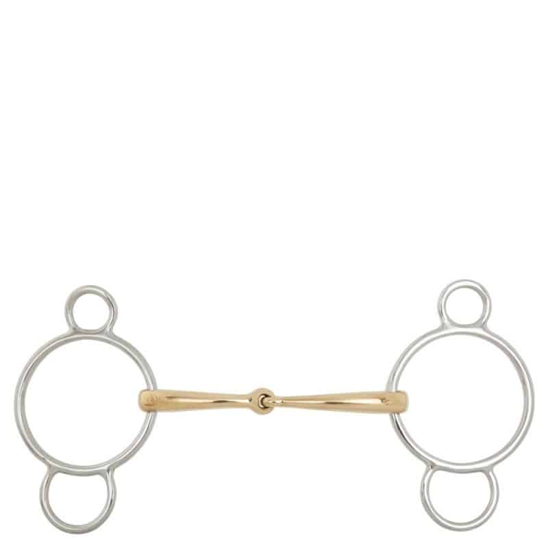 El bocado se puede utilizar con una o dos riendas o con puentes Pelham unidas al anillo medio e inferior.