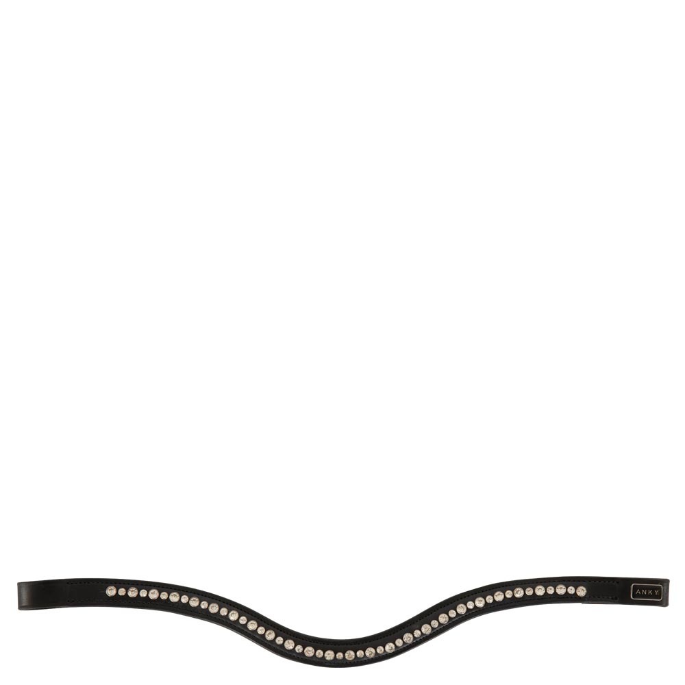 Esta frontalera para la frente curva es ligeramente redondeada y está hecha de cuero inglés de alta calidad. La banda de la frente está adornada con brillantes diamantes de imitación Stellux ™ en dos tamaños diferentes.