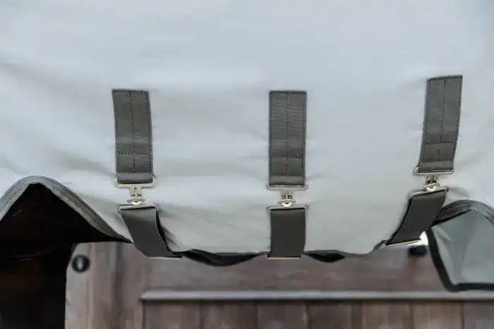 Para proteger completamente a tu caballo, esta manta tiene un collar que llega hasta las orejas.