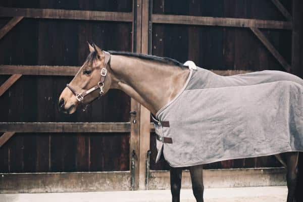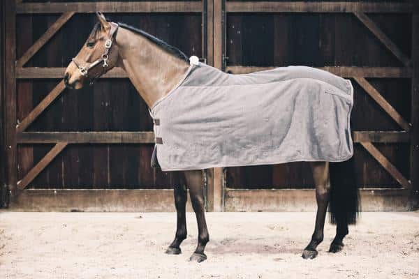 Esta manta de vellón pesado absorbe el sudor o el agua y se asegura de que tu caballo no se enfríe en el proceso.