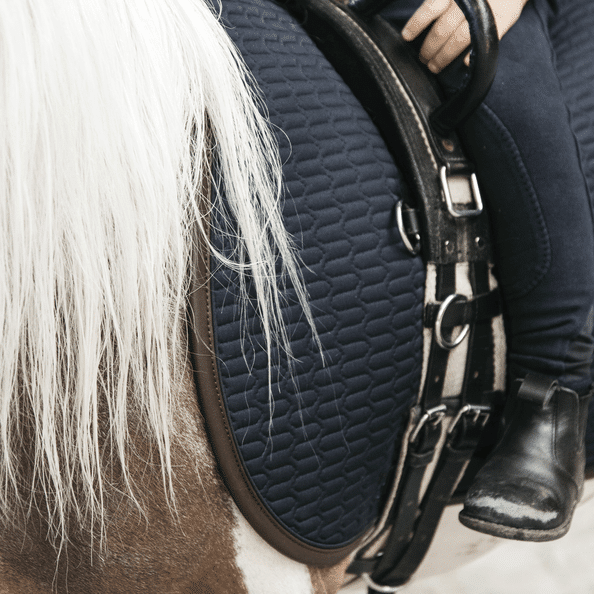 La mantilla está hecha de poliéster 100% y se puede lavar a máquina a 30 °, sin secadora. – Acolchado ondulado – Sin correas de sillín, solo correa de cincha – Logotipo de cuero sutil – Espacio para bordar