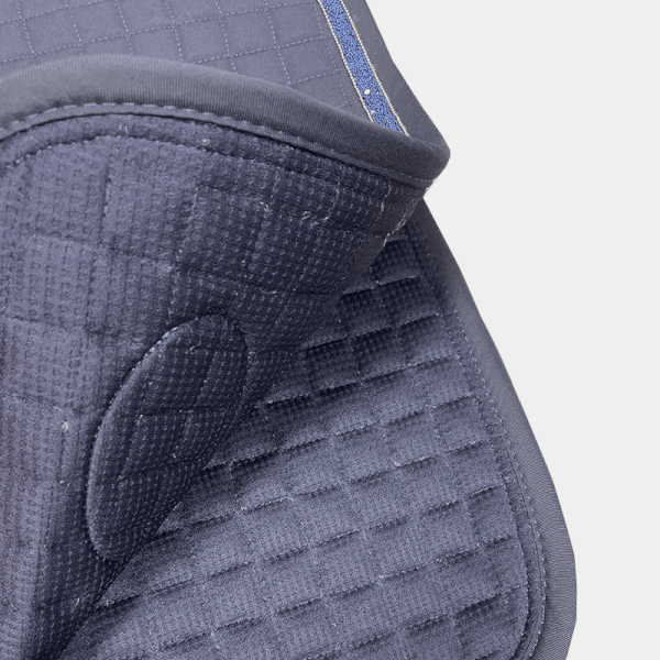 Mantilla acolchada con pequeños cuadrados forrados con Coolmax, un material ligero y transpirable que se seca muy rápidamente después de su uso.