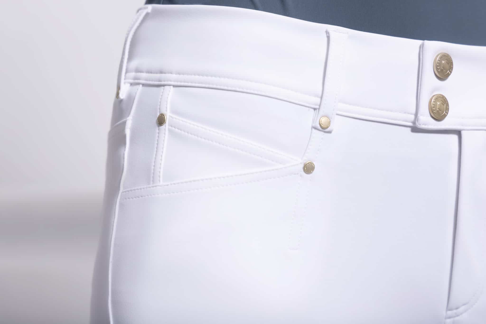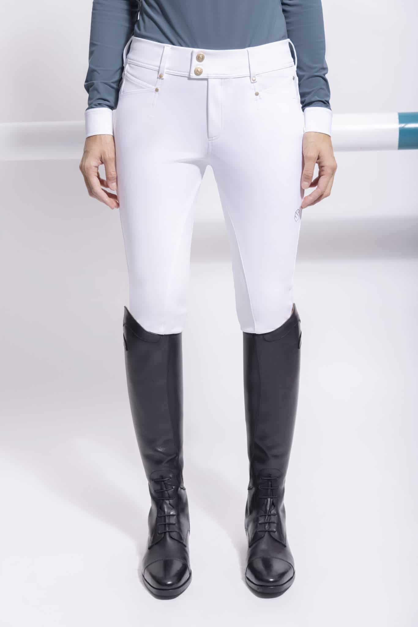 Los pantalones AMBRE FULL GRIP SAMSHIELD  aportan comodidad y tecnicismo a los ciclistas. Pantalón de cintura alta, resalta la silueta del jinete con un perfecto ajuste de su morfología y su cintura alta con el cinturón ancho proporciona una comodidad óptima. Confeccionado en un material elástico muy resistente, tanto antidesgaste como antideslizante, los pantalones Ambre ofrecen un efecto segunda piel para un ajuste óptimo. El material elástico altamente transpirable y cortaviento asegura comodidad y ventilación. El agarre garantiza estabilidad y comodidad de conducción. El material permite bajo compresión de las pantorrillas un perfecto soporte del pantalón. El elástico dentro de la cintura está equipado con un agarre para evitar que la camiseta se suba. El tratamiento anti-UV protege la piel de los rayos ultravioleta. El diseño de los bolsillos de Amber recuerda al de los jeans. Los detalles combinan pespuntes y remaches así como cristales Swarovski® en el escudo.