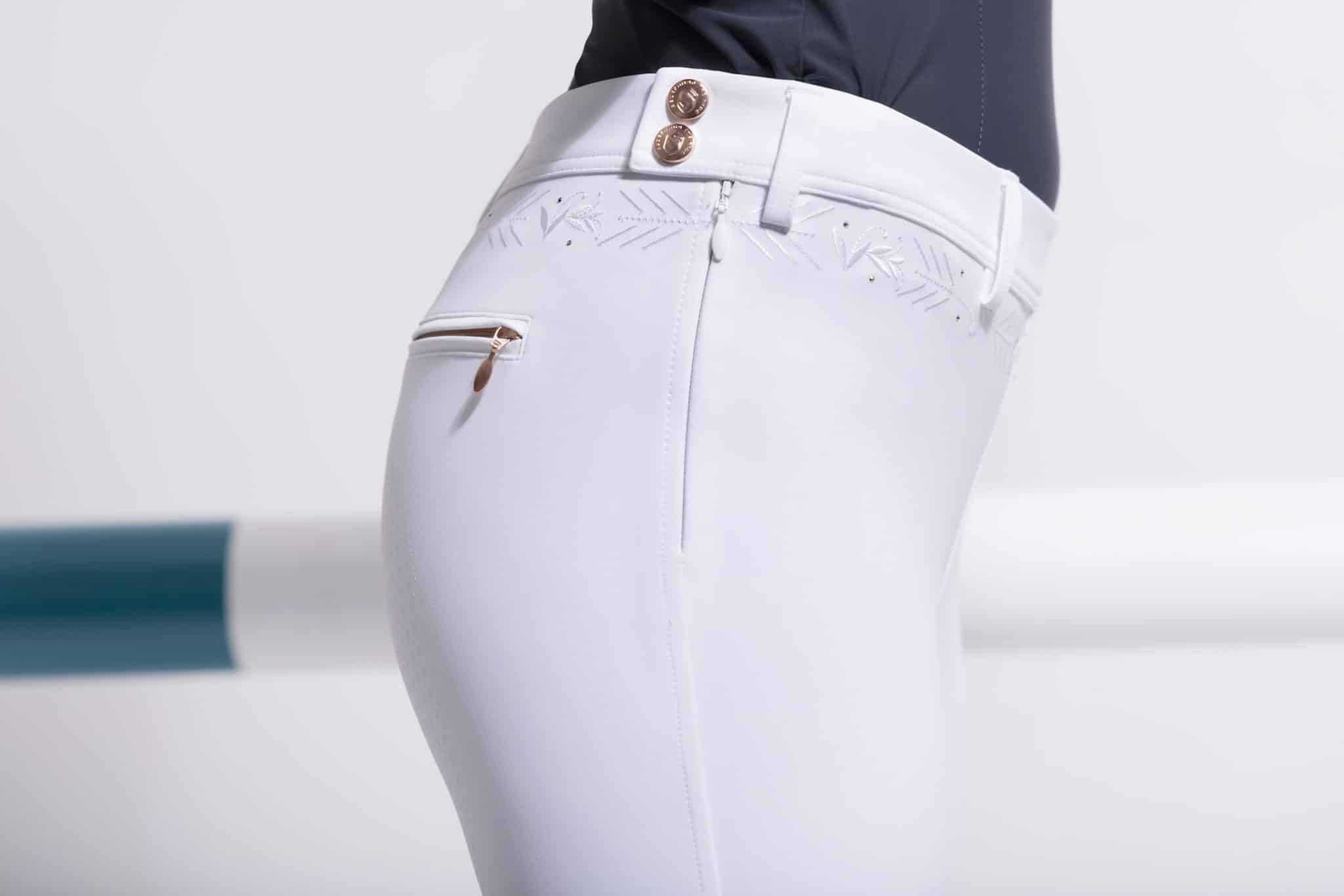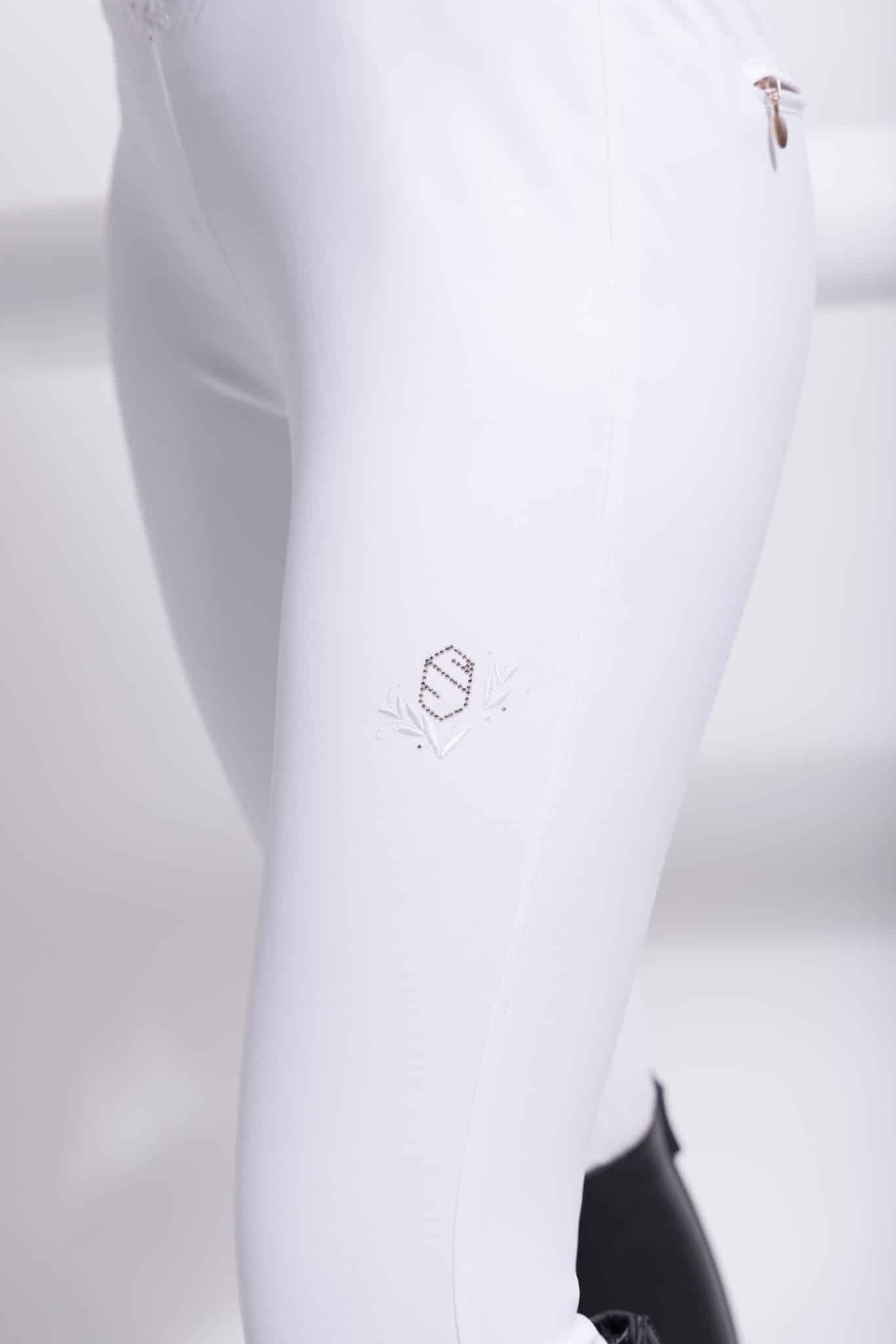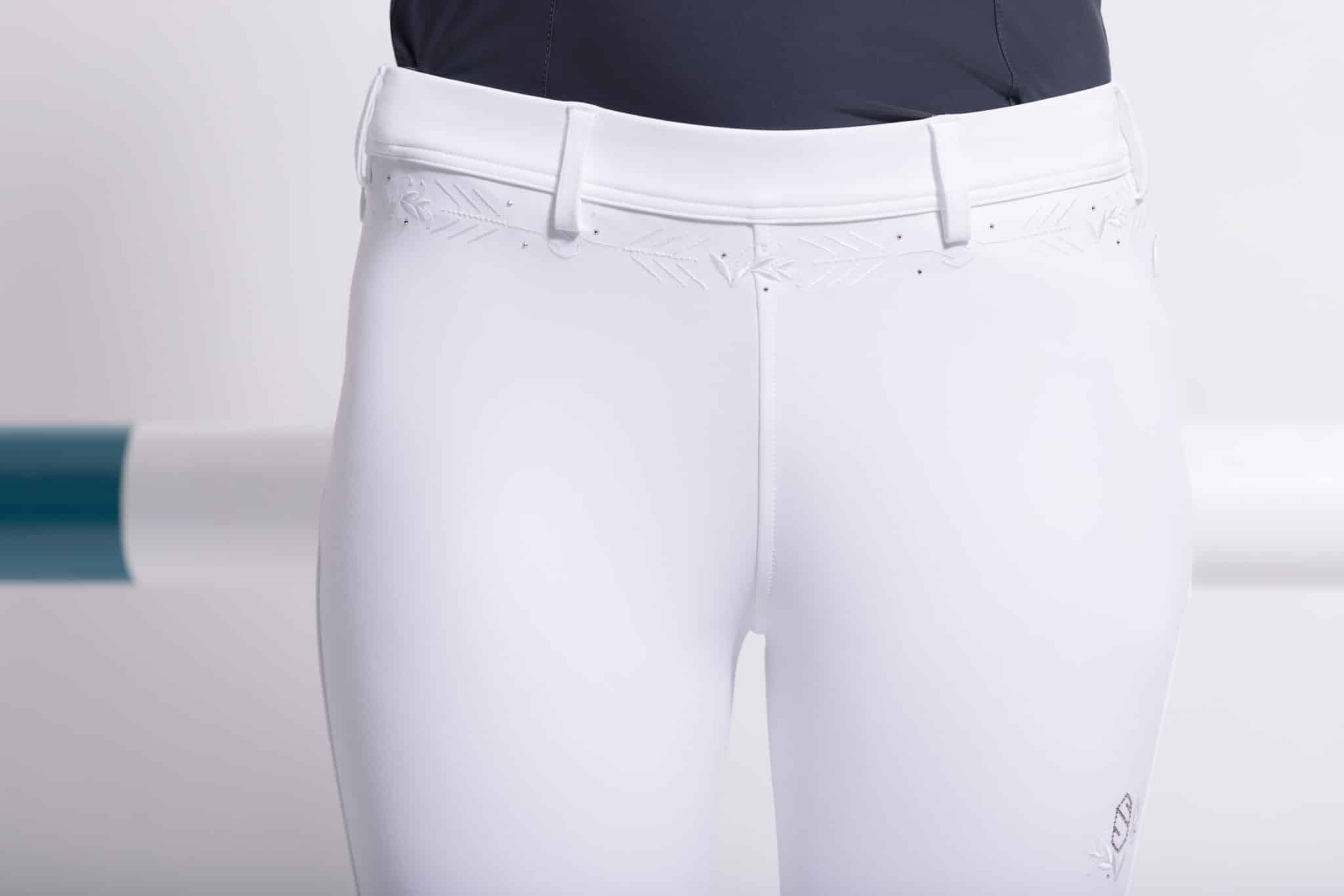 Los pantalones JULLY FULL GRIP SAMSHIELD    aporta comodidad, elegancia y tecnicismo a las amazonas con su ajuste ceñido. Confeccionados con un material elástico muy resistente que es a la vez antidesgaste y antideslizante, los pantalones Jully ofrecen un efecto de segunda piel para un ajuste y comodidad óptimos. El tejido elástico altamente transpirable y cortaviento asegura comodidad y ventilación. El agarre total proporciona estabilidad y comodidad de conducción. El material permite bajo compresión de las pantorrillas un perfecto soporte del pantalón. El elástico dentro de la cintura está equipado con un agarre para evitar que la camiseta se suba. El tratamiento anti-UV protege la piel de los rayos ultravioleta. Los pantalones Jully aseguran elegancia y feminidad a las jinetes con sus bordados y cristales Swarovski® que rodean la cintura. El logo en cristales Swarovski® y bordado en el muslo, añade refinamiento a este modelo. En cuanto al cierre en el lateral del pantalón, afirma la perfección y refinamiento de este modelo Jully.