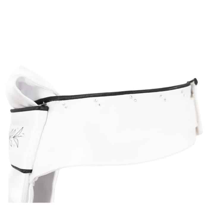 Posee un estampado floral gráfico, adornado con pedrería, llama la atención. El cuello también contiene pedrería. Los estrechos ribetes en contraste y el bordado en bronce o plata completan elegantemente esta corbata original.