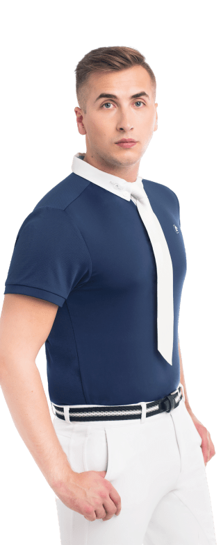 Polo de concurso para hombre,de manga corta con tejido técnico transpirable especifico para temperaturas altas.