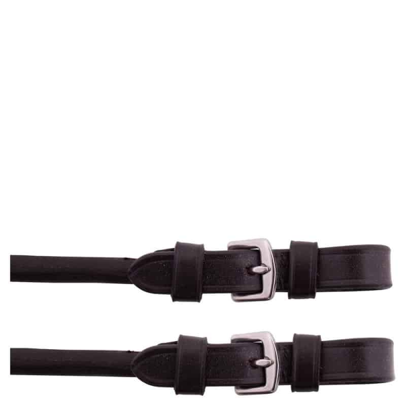 Puentes Pelham de cuero cosido redondo con hebillas de acero inoxidable (23 cm).