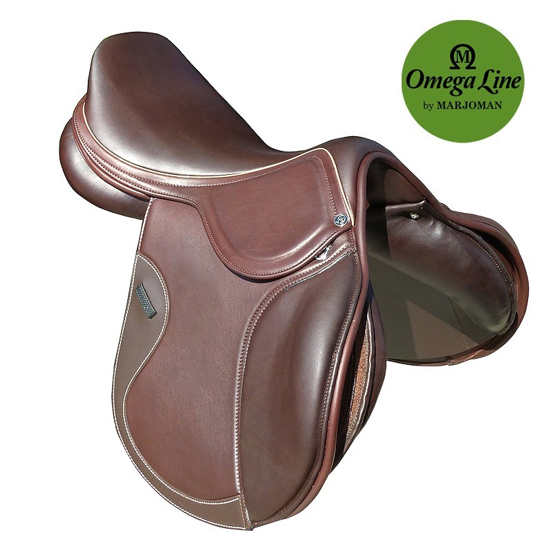 Silla de salto Omega con asiento semi-profundo realizada en cuero de vacuno doble con grip de gran calidad.
